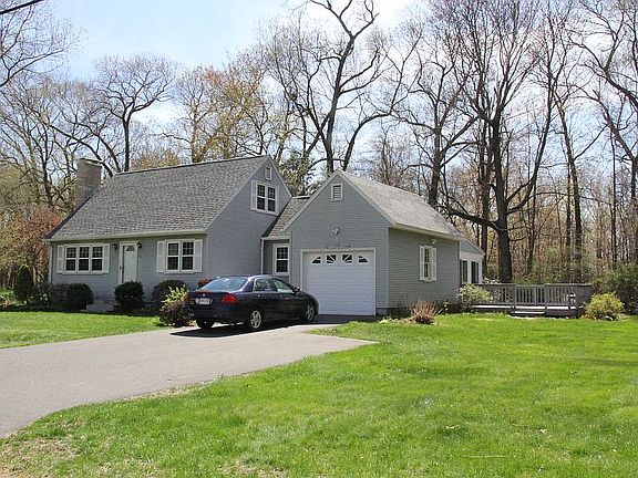 Single family Cape with hardwood flooring throughout, central air, upgraded bathrooms, new septic tank, vinyl sided, replacement windows, partially finished basement, fireplace, one car garage, wooden deck, large back porch with sliders, gas heat, shed, woods behind house - on a quiet dead end street in a great neighborhood.