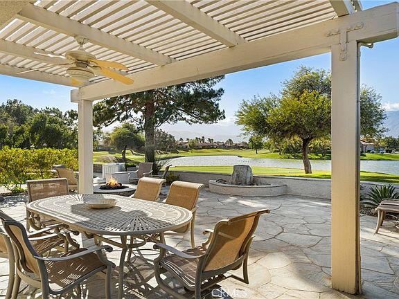 Situated in the highly sought-after Mission Hills East Country Club Community. This beautifully appointed 3-bedroom, 3-bath home offers exceptional indoor–outdoor living with two spacious primary suites and unmatched West-facing vistas of the San Jacinto Mountains. Step outside to an expansive patio overlooking the Pete Dye Golf Course and the serene lake between holes 7 and 8 —perfect for taking in sunsets or enjoying morning coffee. This home features an updated kitchen with granite countertops, custom cabinetry, and an open layout ideal for entertaining. The private, gated front courtyard provides an additional outdoor retreat. A two-car garage plus dedicated golf cart garage offers ample storage and convenience. Water Softener located in garage. This home is offered fully furnished, making it truly move-in ready for full-time living, seasonal enjoyment, or investment.