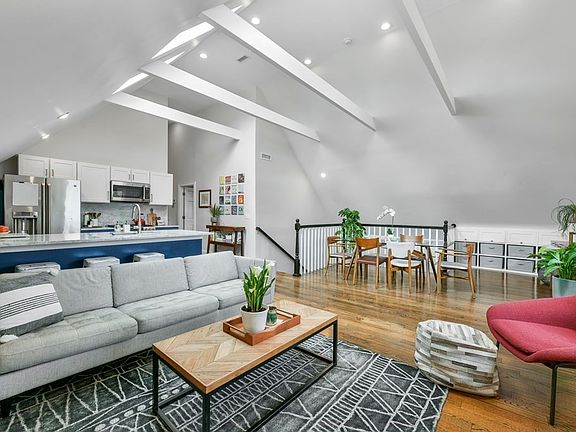 Top floor, three-bedroom condo situated on a beautiful cul-de-sac in the heart of JP’s Hyde Square. Dramatic, open floor plan has soaring, beamed ceilings adorned with 3 skylights & recessed lighting. Vibrant kitchen features stylish blue cabinetry, Carrera marble counters & backsplash. The main bedroom is located at the rear of the unit, with an en-suite bath + private rear deck for enjoying springtime views among the treetops. The unit has two additional bedrooms, one currently used as an office + full guest bath. In-unit laundry & tons of private basement storage! 100% owner occupied, pet-friendly association w/ shared garden beds. 2022 full exterior repaint. Oakview Terrace is a tree-lined cul-de-sac with a tight-knit community & central green space serving as a park for the neighborhood, with block parties, BBQs +holiday events. This gem is tucked away off bustling Centre Street, only minutes to Whole Foods, Hyde Square restaurants, Stony Brook T & Southwest Corridor Park!