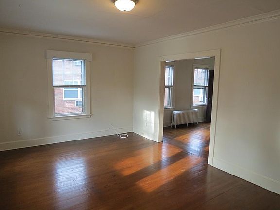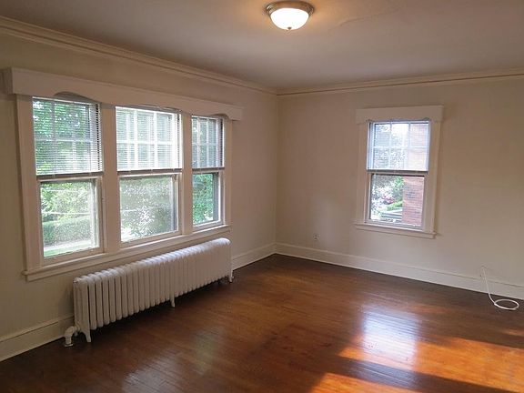 Pride of ownership shines in this well maintained, clean, sunny and spacious 2nd floor apartment. Features updated bathroom, refinished hardwood floors, front porch, large kitchen, oversized yard, gas heat, laundry in apartment and garage parking. Easy access to shops and stores. What a gem!!