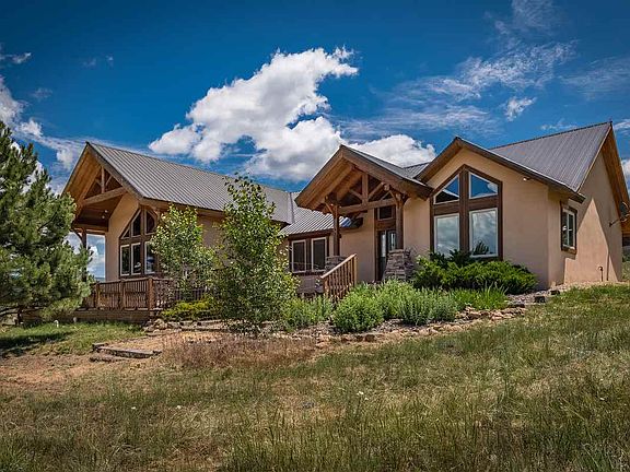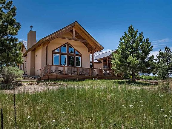 Lovely single-level Timber Frame, OSB insulated home in Angel Fire Resort with covered deck looking across to the Angel Fire Resort PGA-rated golf course. Open concept living with lovely mountain views from wall of windows. Great, sunny location, only minutes from the Village of Angel Fire and all Resort amenities: Ski mountain with its nationally renowned mountain bike terrain park; $18 mill Country Club with both formal and casual dining, gym, indoor lap pool, golf pro shop, summer patio dining, yoga and pilates rooms; Trout-stocked Monte Verde Lake; tennis courts, some marked for pickle ball; hiking trails throughout and more. Kit Carson second generation fiber-optic internet run to house for blazing fast speeds. Work at home in the stress-free southern Rocky Mountains, ski on your lunch hour, and make the scenic run to Taos or Red River for dinner. About 20 minutes from Eagle Nest Lake and the Cimarron River for great fishing. Angel Fire Airport, with its jet-capable runway for private aircraft, about 10 minutes away. A star-studded package. Come see for yourself.