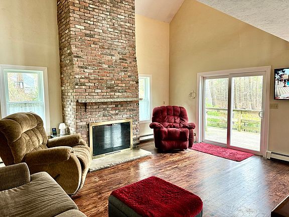 The ultimate lakeside living experience is here with this 3 bedroom home with views of Long Pond! Across from the Long Pond Beach Assoc. swimming beach, this is a water lover's paradise. Step into the vaulted main floor and you’re greeted by a layout that seamlessly integrates the living, dining, and kitchen areas. A breathtaking two-story brick fireplace will grab your attention, while sliders lead you out to your deck, where you’ll find the serene beauty of the pond. The 2nd floor has a loft area that is perfect for an office. This space leads into a master bedroom suite with private bathroom and walk in closet. The lower level offers even more with a finished room with double sliders leading out to a lower deck and yard. There is also the garage. Brand new Harvey windows and sliders fill this home with natural light! The heating system is newer! Bring your visions and embrace the waterfront lifestyle to create lasting memories in this retreat where every day feels like a vacation!