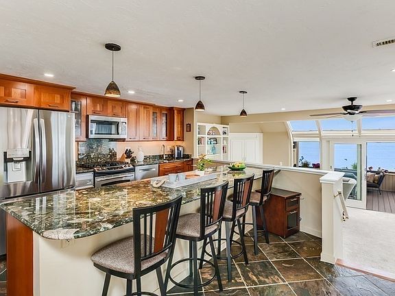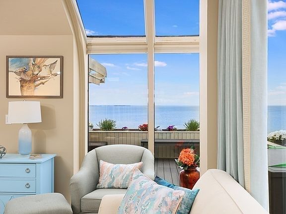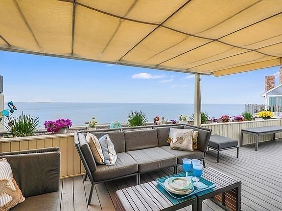 Captivating Views... Lapping waves.. Breathtaking Sunrises.. Walk to the Beach & Restaurants.. Just in time for Summer. This 2 bedroom, 2 bathroom is enviably located atop Atlantic Hill & is exquisitely designed to capture some of the best views of the South Shore. This comfortable & stylish home features a fireplaced living room & separate dining openly flowing from the kitchen which showcases an oversized island complete w/warming drawer. From the generously sized master bedroom w/en-suite bath, a glass door opens onto a second deck ensuring the waves will lull you to sleep & Beautiful cross-breezes will limit the times you turn on the central air. Outside, entertaining is a pleasure with pergola, awning and plant-ready private gardens bordering the deck. Custom, built-ins throughout provide exceptional storage. A shared, private beach, deeded garage parking, & oversized walk-in storage complete this inviting offering
