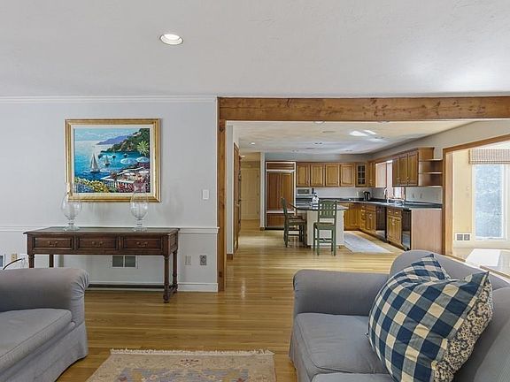 Gracious center entrance colonial sited on a lovely 1.5 acre parcel abutting the Wayland Aqueduct. This special home features a sunny front to back living room with wood burning fireplace and an oversized dining room for entertaining. More casual living can be found at the back of the house with an open concept kitchen, family room, sunroom and coveted three season porch. This floor is completed by a large private home office/library. The second level offers four well proportioned bedrooms including a luxurious master with custom cabinetry, lovely ensuite bath, walk in closet/dressing room and sitting area with fireplace. Expansive, finished, walk out lower level offers playroom/recreation room with gym, full bath and two additional bonus spaces for second home office/home schooling space or additional bedrooms. Mature plantings, blue stone patio and a mahogany deck. Pride of ownership describes the impeccably maintained and loved home.