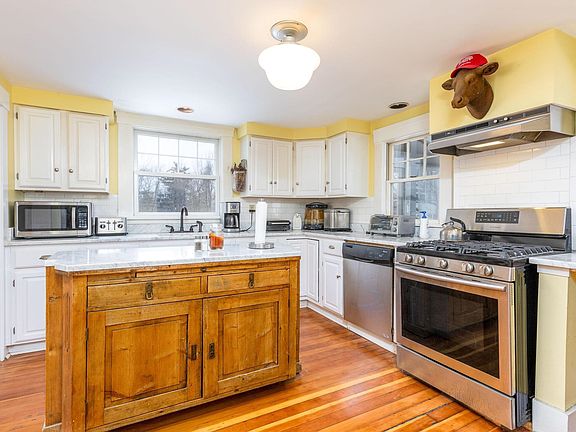 Nestled in the quaint town of Dublin NH is a charmingly renovated Antique Cape, reminiscent of a New England style farm. This home sits on a 3.1 acre lot of fresh air and the country lifestyle. This home sells itself and is loaded with charm and character throughout. Each room exudes warmth, revealing delightful nooks and crannies you'd expect in a home of this period. The updated kitchen, adorned with marble counters and a professional gas range, leads into a dining area and descends into a living room with a fireplace. Wood floors throughout exude a timeless elegance, contrasting with the tile-adorned bathrooms. It doesn't end there. French doors open to an outdoor brick patio, providing the perfect setting for peace and tranquility. There's a first-floor family room, currently utilized as a master bedroom, you can decide what it's used for next. Just know you have options. On the second floor, discover three bedrooms and a full bath featuring a claw foot tub. Outside, you'll find flowering shrubs, raised perennial gardens, and an open level green pasture. A fenced backyard and detached barn/garage offers endless possibilities. This home offers affordability with a blend of old world charm and modern updates. Scheduled Showings begin on Sat. March 9th.