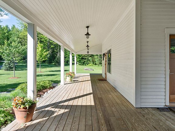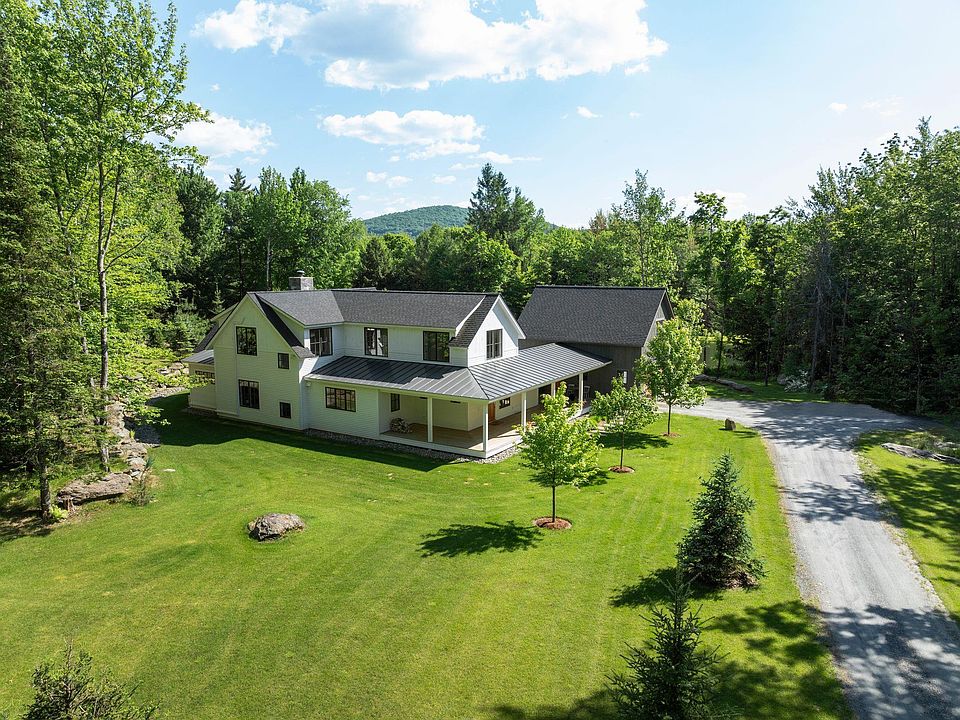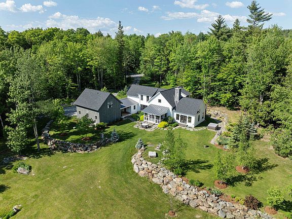 This modern farmhouse on 5 bucolic acres in the Owl’s Head enclave of Stowe personifies a beautifully executed design/build vision. The Scandinavian ethos imparts an open, simple, functional, modern architecture with bright, yet calming, interior that naturally invites the exterior landscape to unfold before you. This timeless design is seamlessly integrated with nature, utilizing Vermont materials, such as ash flooring and beech wood ceilings to enhance the light-filled and inviting open floor plan centered around a two-story slate wood-burning fireplace. The sleek kitchen in the primary residence features Danby marble, custom cabinetry, and high-performance appliances. In the main house, the first-floor primary suite, the screened-in porch and the additional two bedrooms on the second floor, look out onto the 5-acre property, a quintessential Vermont environment highlighted by a large pond. The same attention to detail and design concepts are present in the one-bedroom apartment above the heated 2-car garage, providing an optimal space to host friends and family. The balanced and conscientious construction, idyllic setting, and convenient location just three minutes from the village of Stowe make this the perfect home or peaceful retreat for all seasons.