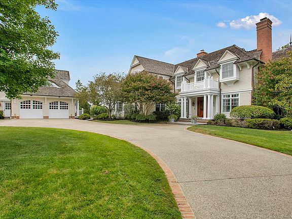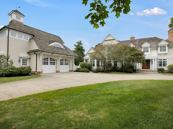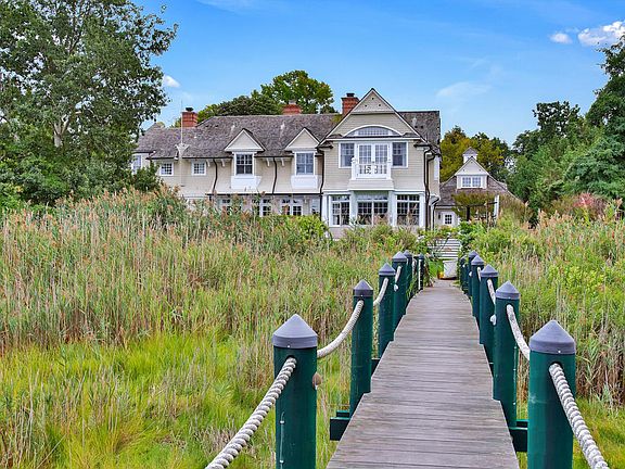 Live year round enjoying the unspoiled natural surroundings in this striking Nantucket style shore colonial designed by Anderson and Campanella. Adorned with ipe decks, Chippendale handrails, eyebrow windows, cedar shakes and siding, the attention to detail is evident everywhere. The great open floor plan adds to its beauty. The curved wall of windows in the expansive kitchen provide opportunities for catching amazing sunrises and sunsets. Custom mahogany office, five fireplaces and butler's pantry are just a few of the amenities offered. From the front foyer with floating staircase and full wall recessed moldings to the family room with a series of French doors that take advantage of the tranquil water views, this house embodies elegant living at its best.