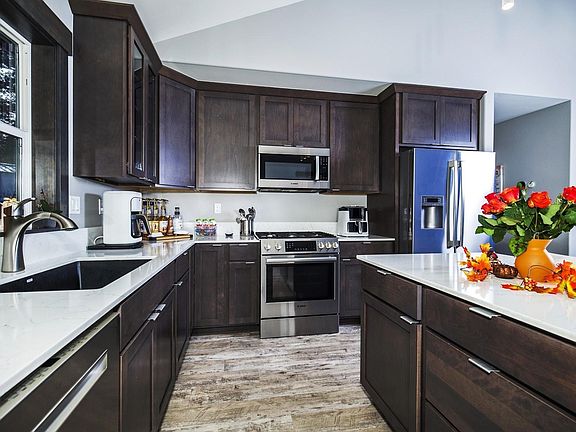 Situated on a .51-acre lot just minutes from Schweitzer Mountain, this newly constructed home by Idagon offers modern amenities and convenient features. The county-maintained road ensures easy access to the asphalt driveway. Inside, upgrades abound, including a finished garage, sliding barn door, luxury vinyl plank flooring, quartz countertops, stainless steel appliances, and an eat-at island. The primary suite features a spacious walk-in closet and en suite bath with a walk-in shower. An extra bonus is the finished space over the garage, accessible via pull-down stairs. With an RV hookup ready and the home plumbed for a natural gas BBQ, it's perfect for entertaining. Close to stores, restaurants, parks, and downtown Sandpoint.