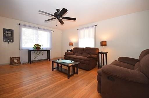 WOW! Adorable, well maintained ranch nestled away off the street provides just the perfect location! This home features a cozy living room offering bright light, kitchen w/ appliances & dining area. The right wing of this home features a spacious master bdrm, along w/ two additional bedrooms all w/ hdwd flrs & full bth. Lower level features a generous sized family room w/ lot of closet space, spacious full bath w/ jacuzzi tub & shower a bonus! Outdoor fun begins here w/ this fantastic flat back yard- fully fenced in, privacy, patio dining area, 27' above ground pool and oversized 20 x 14 shed. Seller states upgrades include roof (2015), replacement windows & vinyl siding (2005), remodeled full bth, hot water tank (2014) & central air a nice bonus!