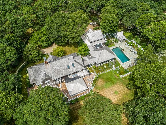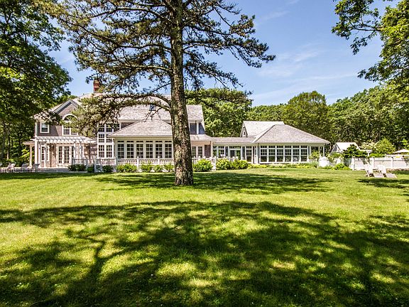 THE PERFECT VINEYARD RETREAT THAT HAS IT ALL! This property offers all the room you need for today's ''stay-at-home'' environment. There are wings, lofts, and a private guest suite above the garage, providing a myriad of independent locations and common areas to gather at the beginning and end of the day. The grand entrance sets the tone of this Vineyard estate located on 3.15 acres of land. The home overlooks pastoral fields with surrounding woodlands to create a peaceful setting to retreat amid the dynamics of today's world. The pool area and custom-designed pool house provide an expansive outdoor living space full of sun and fresh air. The owners chose the location in the Tashmoo Association because of the amenities of the community, which provides tennis, a dock, and proximity to Vineyard Haven Village. An up-Island property in a down-Island location. A grand foyer invites you to the living room on the right with fireplace and French doors to the back patio. The dining room connects the living room to the kitchen, which is more than generous with a breakfast area overlooking the gardens and pool. Open from the kitchen is a custom family/sunroom with vie