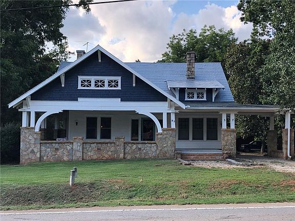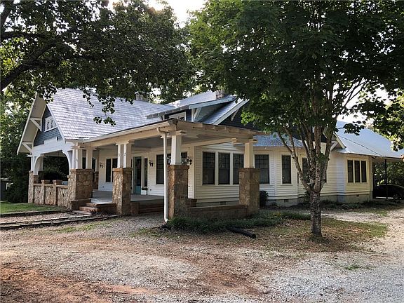 Updated Colonial Craftsman showcase within walking distance to shops & dining in downtown Locust Grove. 4 bedrooms/3.5 baths, separate dining room, living room. Master bedroom w/sitting area. Huge flex room in rear of house with it's own entrance perfect for salon, office, rec room, or in-law suite. Huge kitchen with built in shelves & walk-in pantry, tile floor, new counter tops & appliances. House restored, painted, and updated throughout. Expansive (bowling alley) front porch w/portico. Double carport at rear entrance. 20x40 shop w/concrete floor & electricity.