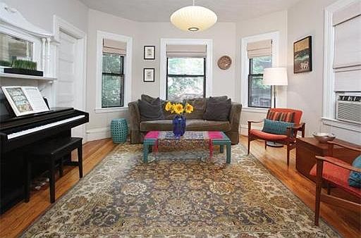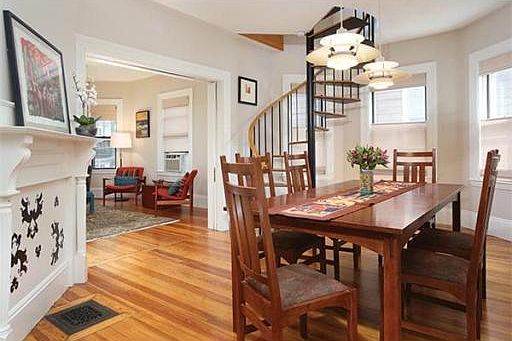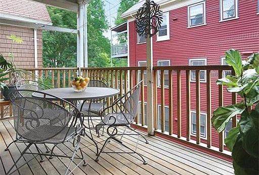Inviting & spacious Brookline Village 3-4 bedroom, 2 bathroom condominium. Highly versatile floor plan on two levels. 1st level features generous living & dining rooms separated by pocket doors, & a large, 2009 renovated kitchen. A bedroom located adjacent to the kitchen is currently used as family/playroom. Another small bedroom with bow window currently serves as a home office. In addition there is a bathroom, laundry room, & large deck accessed by sliding doors from kitchen. The 2nd floor, reached by spiral staircase, offers two bedrooms, a bathroom with whirlpool tub, & an additional small room currently used as child's bedroom, also ideal as study or guest space. Thermal pane windows, substantial private basement storage, unit-specific forced air furnace & one assigned outdoor parking space. 2008 roof. Coveted location, central to a wide variety of dining & shopping options, public transportation, playgrounds, schools & the Longwood medical area.