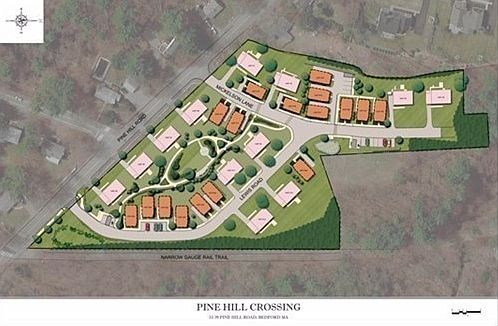 Pine Hill Crossing! Bedford's newest neighborhood ! This single level detached 3 bedroom, 1 bath home offers easy access to Pine Hill Road, with views of the soon to be "pocket park" and Narrow Gauge Trail treetops! This renovated 3-bedroom, one bath condominium boasts new kitchen cabinets, granite countertops, and tile bathroom, Bruce hardwood floors,carpeted bedrooms, and washer/dryer included.Brand new central AC just added! Large front lot features mature landscaping, and back yard is perfect for a private outdoor entertaining. Private driveway, carport, and enclosed storage shed add to the uniqueness of this condominium. THIS HOME IS OFFERED FOR IMMEDIATE CLOSING AT PRE-SITE COMPLETION PRICING! Great sunlight with 360 degree exposure!