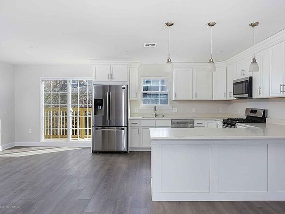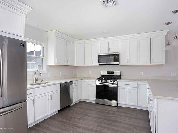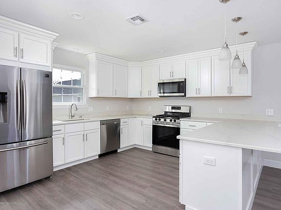 BEAUTIFUL CUSTOM BUILT HOME! Approx 1,900 sf. This home has 4 Bedrooms, 2 Baths. Open floor plan lends to bright and sunny Kitchen w/ granite counters and sliders that lead out to the deck. Stainless Steel appliances, includes dishwasher and microwave. Master Bedroom features large bay window and sliding glass doors leading out to upper deck. Low-E windows throughout. Lower level has garage and a 964 sf storage area with windows and walk out sliding doors to the backyard. Brand new 6ft vinyl fence. Less than a block from the beach, shopping, Garden State Pkwy and NYC Ferry. 10-Year Home Warranty Incl.