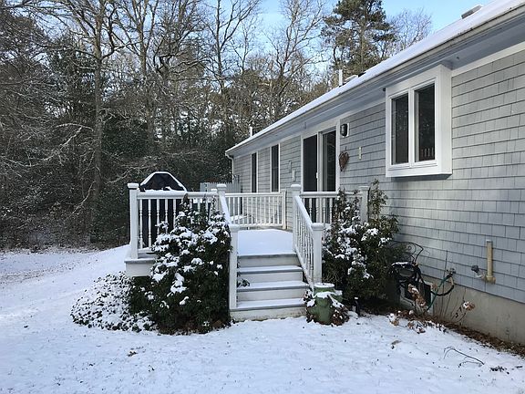 Very private and lovingly maintained Ranch is nestled in a highly desirable neighborhood in East Sandwich. The home sits over 0.93 acres of land surrounded by conservation land and a short walking distance to Spectacle Pond. Hardwood flooring throughout the house. The living room opens to the updated kitchen and dining area and it offers a fireplace with woodstove along with a front large bay window. The kitchen was updated in 2017 with new granite counter tops, cabinets along with a matching back splash mosaic and stainless steel appliances. The dining area leads to the back deck via a sliding door that overlooks a large back yard. Basement is partially finished. The house has met MASS Save Standards of energy efficiency back in 2015. Natural Gas is available at the street and house can be converted. Minutes to route 6 and very short drive to historic sandwich village, sandwich boardwalk, sandwich glass museum, heritage museum & gardens and the canal.