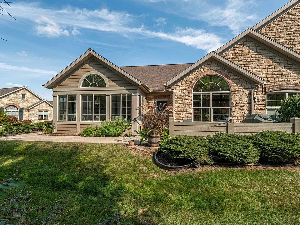 Quietly tucked into a beautiful setting this condo will make life easy. Imagine no more winter snow shoveling and no more summer lawn care. Two bedrooms plus a large den offer a multitude of spaces to relax and work. Recent updates include new stone face on the fireplace and a newly tiled shower in the primary bath. Walls of windows in the 4-season room allow you to enjoy nature without the summer pests or winter cold. Meals and entertaining are easy in the large kitchen. These units were designed for single level living no steps for access make aging in place a long term possibility. Close to parks, restaurants and easy access to all things Madison.