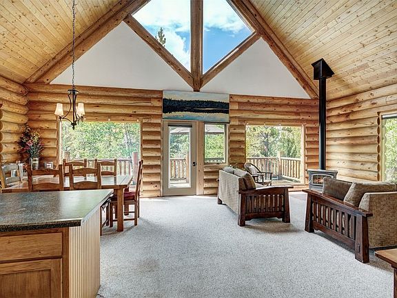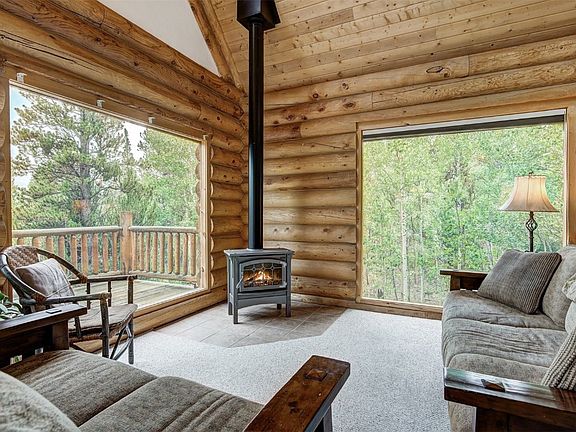 Quintessential mountain cabin retreat surrounded by aspens with stunning views of the Mosquito Range. Main living area features soaring windows and abundant natural light. Flexible floor plan offers two separate living areas with private access, perfect for guests, multi-generational living, or rental potential. Property is approved for short-term rentals, making it an excellent investment and personal getaway. Convenient location just 35 minutes to Breckenridge and 5 minutes to Fairplay for shopping, dining, and year-round adventure. Spacious two-car garage with loft/second level provides extra storage, workshop, or creative space. A true Colorado mountain escape.