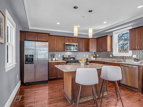 - Features: Flooring - Hardwood, Dining Area, Countertops - Stone/Granite/Solid, Kitchen Island, Deck - Exterior, Exterior Access, Open Floorplan, Recessed Lighting, Stainless Steel Appliances, Gas Stove, Lighting - Pendant