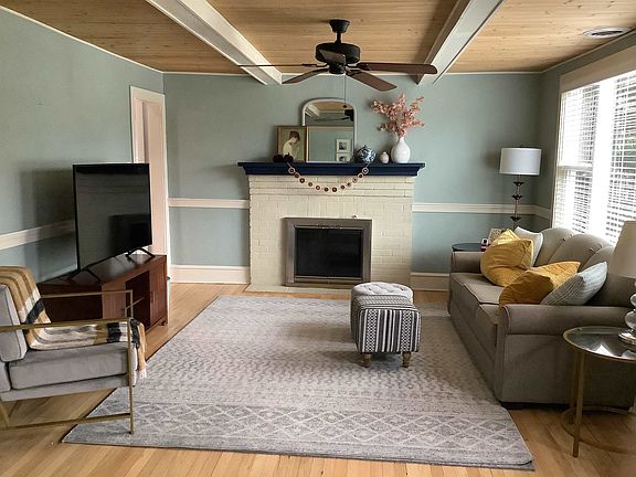 Mid Century Classic Cape Cod with 4 bedrooms and 3 full baths. Formal living room with renovated hardwood floors, built in wood burning brick fireplace with a new flue. Spacious master suite on the first floor with newer flooring and private bath. Additional full bath on first floor with shower. Large kitchen opens to a dining area and family room with vaulted ceilings and sliders to a side patio. Breeze way to a 2 car garage. Finished basement with gas log fireplace and an office space. Utility room with washer and dryer and mechanicals. Second floor has 3bedrooms with a full bath. the fireplace in the one bedroom is not functional. Upgrades done in the past few years include new central air (condenser and attic air handler) new chimney flue, new hot water heater, new large windows in the front of the home with new custom blinds, security system and CertainTeed cedar impression added to the front of home.