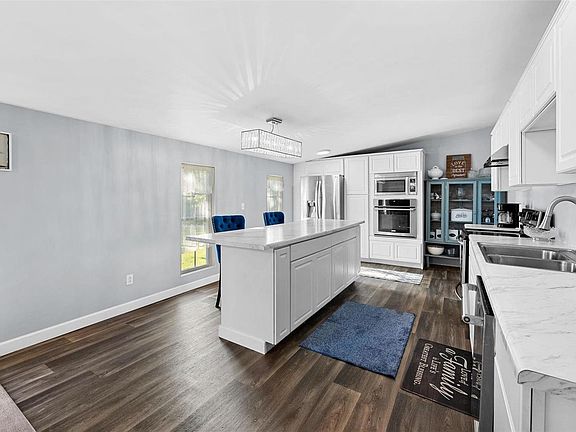 Fully Renovated 1.5 Story home on 6 acres at the end of the lane. Total Privacy! 5 bedrooms, 3 baths. Two primary bedrooms with full bath. One on the main floor and one in the upper level. (upper level primary bathroom has the vanity, toilet, and shower-just needs flooring and installation) Front and back decks. Two sheds. All lights on dimmers. Dual HVAC installed July, 2024. Seller is willing to sell the house and three acres for $270,000 and the additional three acre parcel for $40,000. However, the house and three acres would need to go under contract before we would sell the three acre parcel. Horses Allowed. Additional Rooms: Mud Room