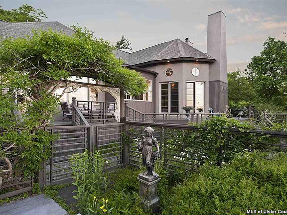 This outstanding Woodstock estate boasts panoramic mountain views from the Berkshires to the Catskills, a heated in-ground pool, 7.6 lush, landscaped acres and over 4100sf of immaculately finished space. Architect designed and custom built, this luxurious private retreat in Raycliffe features a dramatic, double-height great room with limestone fireplace and 75 mile views though French doors. The gourmet kitchen has custom Michael Graves design cabinets, granite counters, and top of the line appliances.