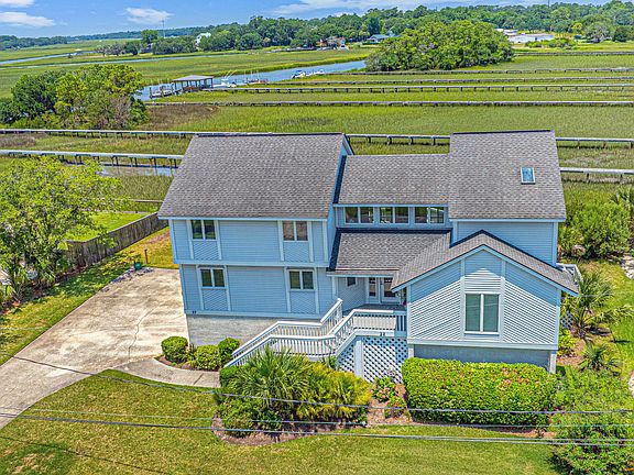 Welcome to 37 Rebellion Road, a contemporary marsh front oasis! Nestled in the established and desirable South Windermere neighborhood, this elevated gem offers a harmonious blend of modern design and natural beauty. Let's explore the highlights: ~Beautifully Landscaped: The lush greenery surrounding the property sets the stage for tranquility and serenity. ~Elevated Elegance: Step onto the elevated deck and balcony and take in the breathtaking views of the marsh. With 3,264 square feet of living space, this home boasts 6 bedrooms and 3 1/2 bathrooms...~Abundant natural light: Sunlight floods every room through an abundance of windows, creating a warm and inviting atmosphere. Unbelievable, unparalleled sunsets await you. ~Two-Car Garage: Ample storage space awaits in the attached, under home garage, perfect for stowing away beach gear, yard equipment, kayaks, or even creating a flexible space that you can make all yours. ~Open floor plan: Vaulted ceilings with skylights and recessed lighting enhance the spaciousness. Wood floors flow seamlessly throughout the main level. The great room, dining room, sunroom and kitchen all flow together, creating a warm energy and flow throughout the home. Carpet is found only in the bedrooms and there is beautiful tile in the bathrooms. ~Great room: Cozy up by the fireplace in the great room, which features built-ins and multiple doors leading to the large deck overlooking the marsh. ~Stunning kitchen: The heart of the home, the kitchen boasts a large island, sleek white cabinetry, double ovens, stainless steel appliances, a gas cooktop, prep sink, and a breakfast bar overlooking the eat-in area. Imagine sipping your morning coffee while watching an unbeatable sunrise. Or having dinner and watching the magnificent sunsets. ~Marsh-view deck: The huge deck provides a front-row seat to nature's theater. Below, a covered patio invites relaxation. ~Master retreat: The master bedroom offers a walk-in closet, private balcony facing the water and marsh, and a large wall with sleek storage cabinetry and built-in shelving. ~Luxurious Master Bath: Tiled flooring and a walk-in shower with a seamless glass door create a spa-like experience. ~Additional bedrooms: Five additional bedrooms, one with five built-in bookcases, accommodate family, guests, or a home office. Two additional full bathrooms: One features a large vanity with dual sinks and tile floors. South Windermere Lifestyle: This established neighborhood is just 5 minutes from downtown Charleston and 15 minutes from local islands and beaches. Shopping, dining, and amenities are all within reach. This home is more than a house...it's a lifestyle. Schedule your private tour today!