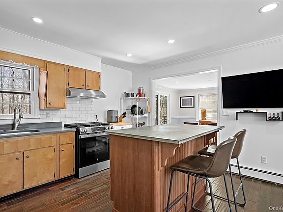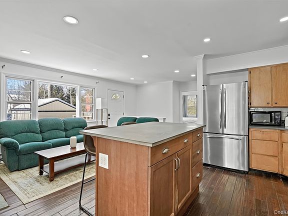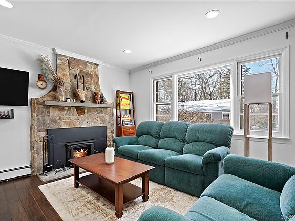 Welcome to this adorable, sun-filled 2-bedroom, 1-bath ranch offering rights to the Lake Kitchawan Beach Association. This home features a wrap-around deck perfect for summer living and backs up to town-owned land, which provides privacy and access to nature year round. Inside, a large stone, wood-burning fireplace anchors the living space- ideal for cozy winter nights. Recent updates include recessed lighting throughout, new stove, new washer and dryer, and fresh interior paint, making this home truly move-in ready.