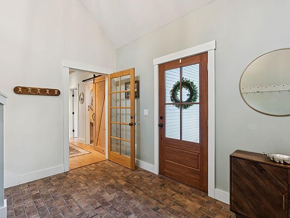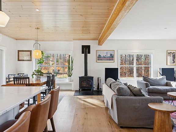 This stunning home is set on a beautiful double lot totalling 4.5 acres, offering exceptional privacy, peaceful natural surroundings, and ample room to expand. The home features a high-end custom kitchen with quality cabinetry, stone countertops, and a large center island perfect for cooking and gathering. Gorgeous white oak flooring extends throughout the main living areas, leading to a spacious walk-in pantry and a dedicated office. The living room is highlighted by soaring vaulted ceilings and expansive windows that fill the space with natural light. Three well appointed bedrooms include a beautiful primary suite with generous closet space and a calming, elevated feel. In addition to the three bedrooms the home offers two additional rooms that can easily serve as guest spaces, playrooms, workout areas, or flex rooms to suit anyones needs. A wood stove and multiple heat pumps ensure year-round comfort and efficiency. The large, dry basement offers excellent potential for additional living space, with high ceilings and flexible layout options. The 30x30 oversized two-car garage provides abundant space for vehicles, storage, hobbies, or a workshop an ideal addition to this private and thoughtfully designed property.