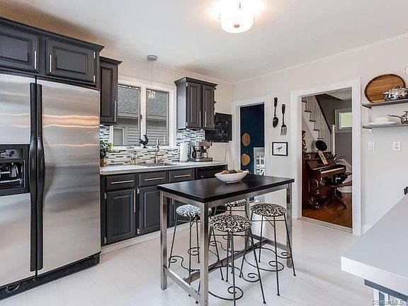 This home is a work of art! Meticulously maintained and lovingly remodeled and decorated! 3 bedrooms, 2 full bath, central air, newer roof, replacement windows, natural gas water heater! Upon entering this home you will find a lovely light and bright enclosed porch. So many uses for this space such as a mudroom, sunroom, sitting room. Through this entryway is the spacious living room with gorgeous hardwood floors. Plenty of room for relaxing, playing music, having family and friends over. This room flows right into the open concept dining room with the same hardwood flooring and lovely exposed brick. You will love entertaining or having family meals in this space. Open to the dining room is the beautifully updated kitchen with stainless steel appliances, trendy gray cabinetry, glass tiled backsplash, pantry wall, open shelving and movable island! Jennair downdraft gas stove. An elegant updated full bath is on this floor as well. Upstairs you will find 3 bedrooms, all with hardwood flooring. Very beautiful rooms with updated windows to let in lots of natural light. The closets are extra large. Another elegant updated full bath is on this floor with gorgeous black Kohler fixtures and unique stained glass door. Every detail in this home has an upscale feel. Outside is an absolute oasis. 2 decks to to accommodate different seating areas, an extra large pool, a shed for added storage. Extensive plantings throughout. Fully fenced yard. Make this house your home! Water heater - 2009, Roof - 2009, Pella slider - 2009, new lower deck, new driveway fits 4 cars, pool - 2017 including alarm and electrical, LG washer and dryer - 2008. Central air in this home. Seller uses window units on 2nd floor for added cooling. A closet in one of the bedrooms was previously removed to make the room larger but a closet can easily be added by the future owner. House is heated by oil but water heater is connected to natural gas line!