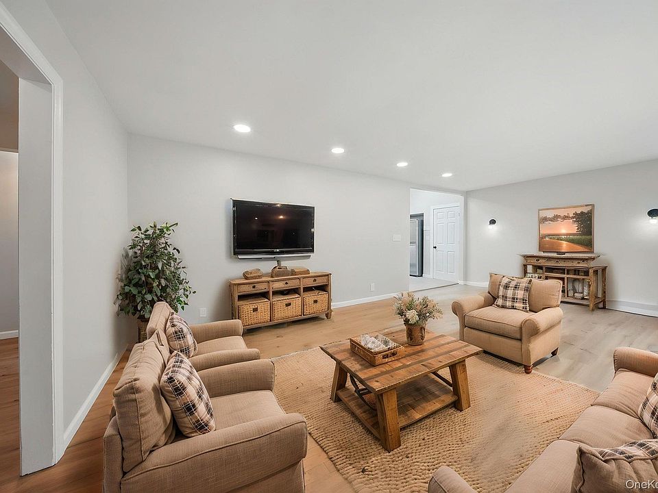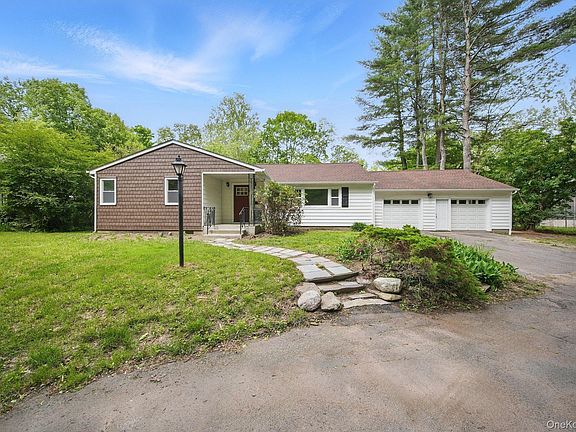 Like new! Beautiful renovated ranch with large, flat fenced in yard. As soon as you walk into the foyer you'll appreciate the flowing floor plan and oversized living room that features a large picture window. Recessed lighting is throughout the whole house as well as the new laminate wood, water proof flooring. Just beyond the brand new bright and airy black and white kitchen with skylights and cathedral ceiling and all new stainless steel appliances, granite countertops, and large island is a wonderful light filled family room with sliding doors that lead to the patio. There are 4 bedrooms including a primary with a primary bathroom and walk in closet. Both full bathrooms are new like the rest of the house Enjoy a fenced in, private yard and here's a plus - just beyond the fence is a lovely stream where you can sit and meditate or even fish. 2 car garage with brand new doors large enough to include laundry area with brand new washer and dryer also has pantry and storage space. Let's not forget the new windows, new ceiling fan, new doors, new roof, new plumbing, new boiler, new hot water heater, new gutters and new vinyl cedar on facade. Located on a quiet and private street in the village close to Shadow Land Theatre, Borscht Belt Museum, Route 52 and 209.