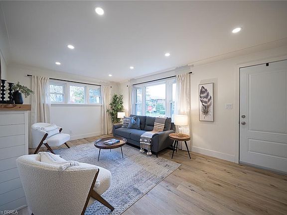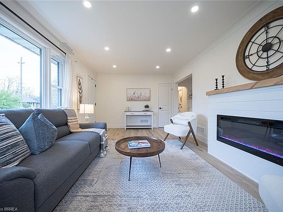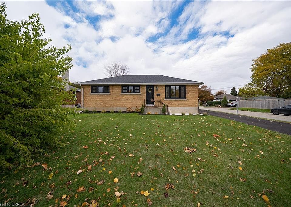 Welcome to 37 Rowanwood Avenue in Brantford’s Echo Place neighbourhood. This move-in-ready, renovated bungalow offers 1,025 sqft of above grade living space with 3+2 bedrooms, 2 bathrooms, and a finished basement with a large backyard. Located on a corner lot, this brick home has a tidy, well-maintained exterior with flowerbeds and a poured concrete walkway leading to the front steps and entry. Inside, vinyl flooring extends throughout for a clean, carpet-free finish. The main level begins in the bright living room, complete with recessed lighting, a modern electric fireplace, and large windows overlooking the front yard for an open, airy feel. The bright eat-in kitchen is equipped with shaker-style cabinets and stainless steel appliances, including a built-in dishwasher, plus a rear door to the backyard. The basement staircase is conveniently located off the kitchen. The main floor offers three comfortable bedrooms along with a 4-piece bathroom finished with a tub/shower combo, stone countertop vanity and recessed lighting. The vinyl flooring continues into the finished basement, which features a large recreation room with recessed lighting, an electric fireplace focal point, storage under the stairs, and a wet bar with cabinetry and a sink. This level also includes two bedrooms and a 3-piece bathroom with a shower, offering flexible space for guests, a home office, or multi-generational living needs. The large backyard offers plenty of greenspace, a poured concrete patio, and ample room for play, entertaining, lounging, or gardening, providing excellent outdoor potential. Located in Brantford’s Echo Place neighbourhood, this home sits in a family-friendly area within walking distance to schools and parks, and offers excellent access to major roads and highway routes for convenient commuting.