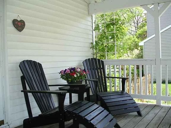 Open, 5/23 1 - 3pm.Adorable hm w/ 4 Bdrms on beautiful lot in village starting w/ an inviting, open covered front porch, LR, FDR w/ parquet flring, all new, updated, spacious kitchen w/ stainless appliances, sliding gls dr to wonderful back patio w/ canopy - all overlooking a fabulous yard w/ many perennials & shade - it's delightful ! Home has been well maintained - NEW roof, central air, gas ht. Walk to library & more. Garage is "as is, where is".