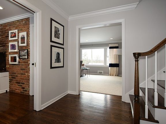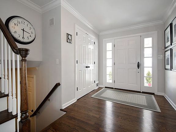 Sophisticated and inviting 4 bedroom, 2.5 bath updated and move-in ready Colonial split-level home in desirable Wickham Woods neighborhood. Walkout to flagstone patio leading to expansive backyard. Spacious and bright, eat-in kitchen with center island, plenty of counter space, SS appliances and wood burning fireplace. Breezy and open foyer leads to stunning formal living and dining rooms with built-ins and expansive windows. Newly finished office/sunroom with high tray ceiling. Dark hardwood floors and recessed lighting. Upstairs Master includes double closets and en-suite bathroom. Three generous bedrooms with shared double sink bathroom. Hunter-Douglas Plantation Shutters and California Closets. Fantastic relaxation space including family room and recreation room with large media built-ins.