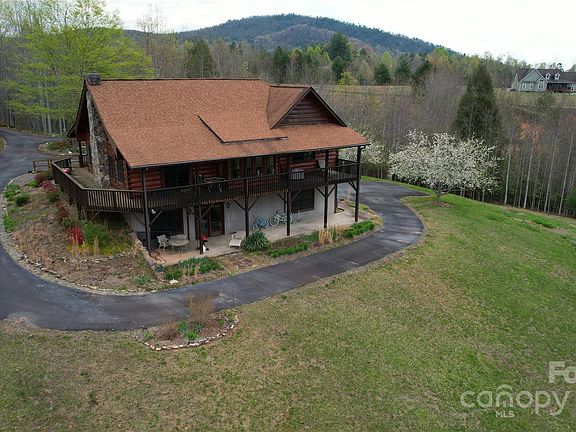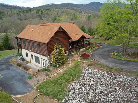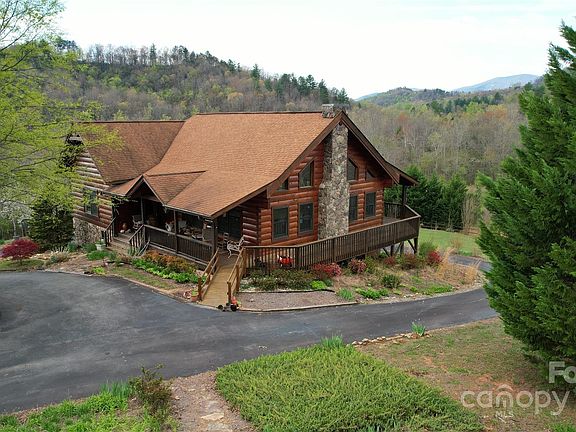 SECLUDED LOG HOME ESTATE - A quiet country setting is the site for this 3 BR, 2.5 BA home set on +/- 2.1 acres. Located on a private site that's only a short commute to Asheville (+/- 45 minutes), this residence features a massive great room w/ a FP & soaring ceilings to give a wonderful sense of spaciousness. The main level offers the great room, a gourmet kitchen w/ center island, and the en-suite BR on the main floor. The theme of this upper level is the abundant natural light: large windows & great natural light floods the home with sunlight. The key amenity of this level is the FP: gather around the fireplace in the great room during chilly winter nights. The lower level offers a den, 2 additional BRs, 1.5 BAs & workshop/storage areas. The home’s outdoor spaces are another true highlight w/ front covered decking plus rear covered decking. The owner has spared little expense in making this home a true showplace.