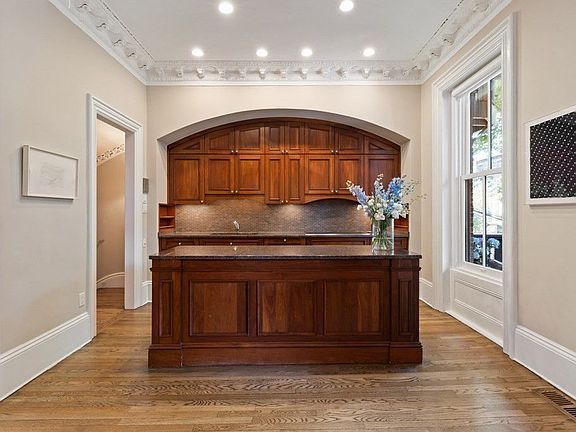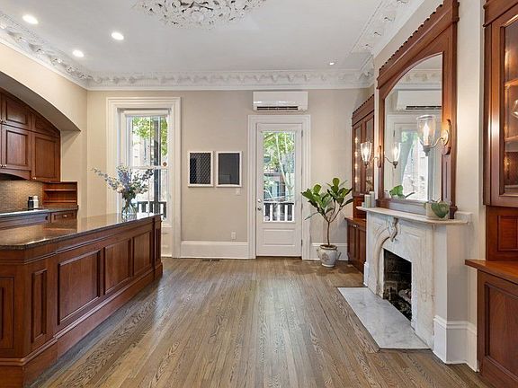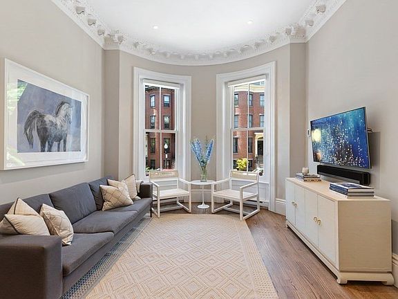 Grand parlor triplex located on sought after South End tree lined square. Beautifully restored and maintained Victorian detail; plaster crown moldings, carved woodwork and original marble mantels create a gracious parlor living, dining and kitchen level. Double door entrance leads to your spacious living room with pocket doors to a large eat-in kitchen with custom cabinetry, granite counters, top of the line appliances and beautiful built-ins. Walk out private deck ideal for entertaining. Street level private entrance, perfect for strollers and bicycles. Intimate library, ideal for office, home theater or additional bedroom. En-suite master bedroom with fully built out (California Closets) walk-in and luxurious master bathroom. Additional full bath ideal for guest. Lower level guest bedroom suite and in-home gym (additional bedroom if needed) and direct access to private garden area and two full parking spaces. Great storage through-out. Many updates including all new HVAC system.