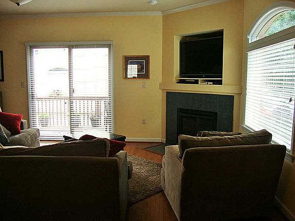 Fantastic condition and location move right in!*Beautiful end unit with gleaming hardwood floors*light and bright kitchen features granite counters, stainless appliances and a dining area with a great view*family room has corner gas fireplace and access to the private rear deck*master suite has a sitting area, walk in closet, full bath and loft that can be used as a den, exercise room, etc.* 2nd bedroom with full bath and large closet*2 car garage plus a basement that can be finished*river walk!*