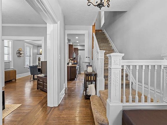 Welcome Home to this BEAUTIFUL move in ready 4BD, 2BA Victorian home located in Crafton Borough. Relax on the large covered front porch. Open the front door and step inside the inviting foyer. The 1st floor features original hardwood floors that are absolutely stunning, high ceilings, high baseboards, and a charming built in cabinet in the dining room. The beautiful kitchen is partially open to the dining room and features stainless steel appliances, granite counter tops, and dark wood cabinetry. The 1st floor also has a 1/2 bath w/laundry room. The 2nd floor has 3 BD and 1 full bath. The 3rd BD features gorgeous stained glass windows. The 3rd floor features a huge 4th room w/vaulted ceilings, 3 skylights, wood beams and ample storage space. The possibilities for the 3rd floor are endless, it could be a large master bedroom, game room, or play room. The basement has tons of storage space. The private fenced in backyard has a nice wood deck perfect for those summer cookouts!