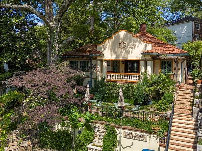 European style meets Ansley Park in this ultra-charming circa 1909 Mediterranean bungalow! Perfectly perched atop a hill with spectacular views of the Midtown skyline from the front porch! Live like you are on vacation every day of the year! Gorgeous architectural details including extensive moldings, hardwood floors, high ceilings, wooden beams and a tile fireplace. The main level features a sizable living room, formal dining room, separate office or den and 3 bedrooms & 2 full bathrooms. The updated chef's kitchen features a butler's pantry with plenty of storage, stainless steel appliances and stone countertops. The deluxe primary suite boasts a large walk-in closet, updated bathroom and access to the professionally landscaped gardens. Separate terrace level apartment with its own private entrance, kitchen, living room, bedroom, full bathroom and separate laundry - perfect for guests, in-laws or as an income generating rental! The stunning gardens in front and back of the home were featured on the Atlanta Botanical Gardens Home Tour. You will feel like you've left Atlanta! Exceptional parking in the circular driveway in front! Alley access in back with a parking pad for 2 additional cars! Stellar location only a block away from Piedmont Park, Atlanta Botanical Gardens and Piedmont Driving Club. Only a short stroll to Colony Square, Peachtree Street, Beltline and numerous restaurants and entertainment! Come see why Ansley Park is Atlanta's premier in-town neighborhood. The lifestyle and location are second to none!