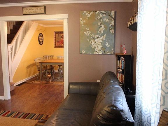 Why rent when you can own? Charming brick home has been renovated & well maintained. 1st floor boasts laminate floors & spacious rooms. Renovated bathroom w/tile floors. Partially finished attic & basement add extra living space. Detached garage, porch & fenced yard. All appliances & new security system convey. Close to conveniences. Ready to call home!