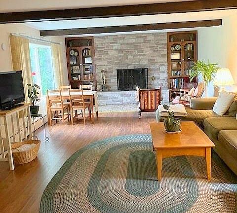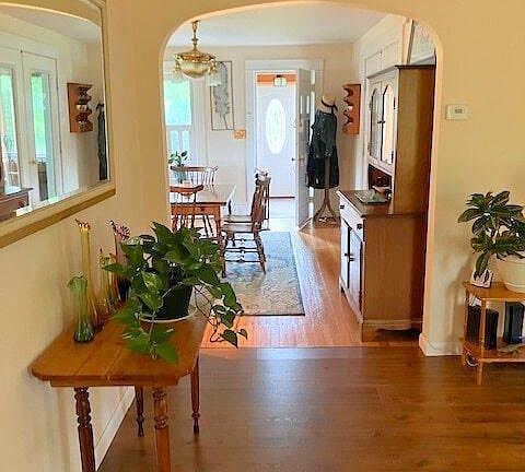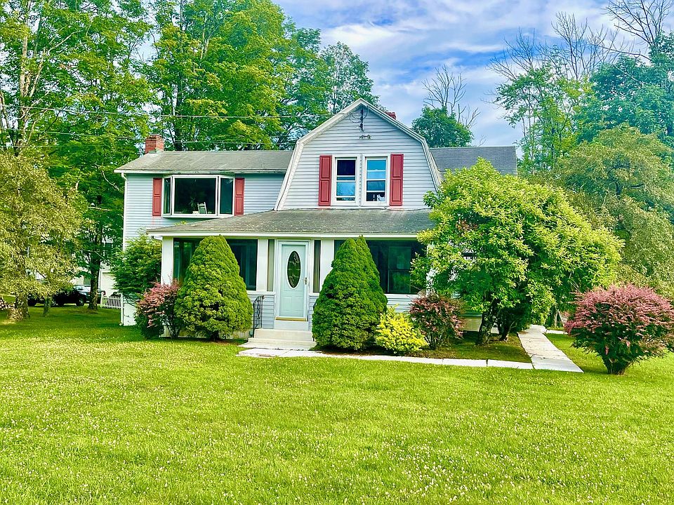 MOVE RIGHT IN to this 3 bedroom, 2 1/2 bath Dutch Colonial charmer! Situated on close to a full acre, the property also features a detached two-car garage. And talk about curb appeal! Enter to sun room which maximizes the natural light. Then into the formal dining room, and note the beautifully refinished hardwood floors throughout, as well as the character of the arched doorways. Off the dining room is a sun room with skylight (separate from front sun room) -- includes heat and its own thermostat. Then on to the spacious living room, which is anchored with a gorgeous stone fireplace (wood burning) and built-in bookshelves, along with a bay window. The updated kitchen features granite and stainless steel, with an adjacent rear entrance mud room, along with a half bathroom with washer & dryer. Upstairs the primary bedroom is spacious, has a bay window, plenty of closet space, and its own full bathroom. New insulation throughout the entire home top to bottom for maximum efficiency. Boiler is serviced regularly, and includes a newer motor. Individual thermostats in just about every room! New carpeting where there's not hardwood. Full, unfinished walk-out basement -- lots of storage space throughout the home, and in the garage. Fabulous home & location in the heart of the beautiful Catskill Mountains (truly among the most beautiful scenery in the world), close to so much -- Bethel Woods Center for the Arts (renowned concert venue and site of the original 1969 Woodstock Music Festival), Resorts World Casino, shopping, services, Route 17 (future Interstate 86), world-renowned hiking, fishing, kayaking/boating, skiing, and lots, lots more!