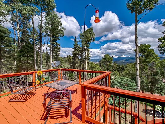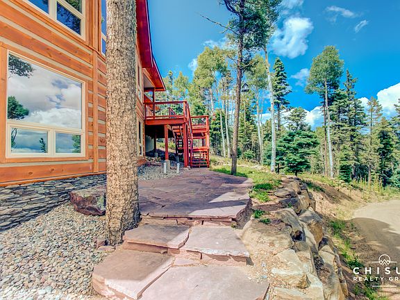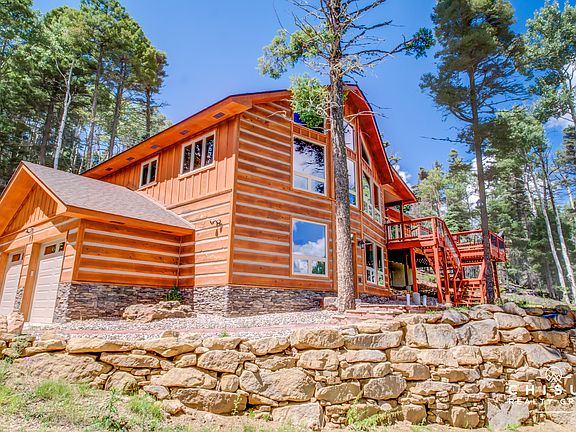 Welcome to your cabin in the woods! This well maintained hand hewn log siding home located on 1.02 acres is perched high above Angel Fire Resort's 18-hole Championship Golf Course. Featuring a large wooden deck with expansive views of the Moreno Valley that can also be enjoyed from the master bedroom, great room, kitchen, and lower level. The great room features floor to ceiling windows with a rough sawn wood ceiling, vigas beams, and a gas fireplace to keep you cosy all winter long. The kitchen is updated with beautiful granite countertops, custom tile backsplash, solid wood cabinets, and stainless steel appliances. All three bedrooms are on the main floor. The lower level is large and perfect for a man cave or game room for the kids. The lower level features in-floor radiant heat, a wet bar, Murphy bed, and a full bathroom. 37 Sacramento is a peaceful setting to enjoy mountain living in style while creating memories that last a lifetime. Winner of 2010 BEST INTEREST AND LIVABILITY AWARD from the Homebuilders Association.