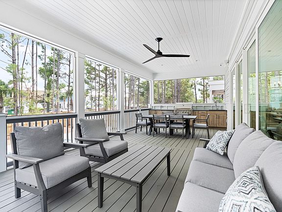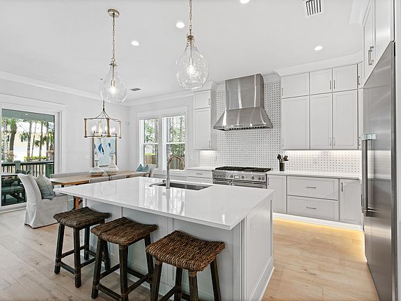 10% ROI!!!! Discover 30A living at its best with this fully furnished, rental-ready home at 37 Sand Dollar Court in Seagrove Beach. Nestled among tall pines in a peaceful cul-de-sac, this coastal retreat combines timeless design, modern comfort, and exceptional rental income potential with projections of $225,000 annually. Just minutes from the new Walton County beach access and close to Seaside, WaterColor, and Old Seagrove, the location offers both lifestyle and long-term value.From the inviting paver driveway and coastal facade to the breezy front porch, every detail sets the tone for relaxed luxury. Inside, wide-plank hardwood floors, shiplap accents, and an open floor plan create a light-filled living space perfect for entertaining. The designer kitchen showcases shaker cabinetry, quartz countertops, a large island, and a professional 48" Thermador smart range with dual ovens, complemented by a spacious island for casual dining.