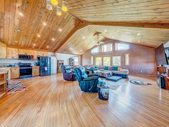 Welcome to 37 Sandturn, a unique custom-built home in Dayton, Wyoming, with stunning Big Horn Mountain views. The main floor features an oversized garage, master bedroom, master bathroom and a second bedroom. The remodeled upstairs includes two new rooms and a large family room, plus an open kitchen, dining, and living area. The exterior boasts rustic distressed Ghost wood from Montana. HOA fees are just $10 per year. For more details, please inquire. Welcome to 37 Sandturn, a unique custom-built home located in the picturesque town of Dayton, Wyoming, offering breathtaking views of the Big Horn Mountains. As you step through the front door, you'll be greeted by an impressive entryway featuring a custom staircase.