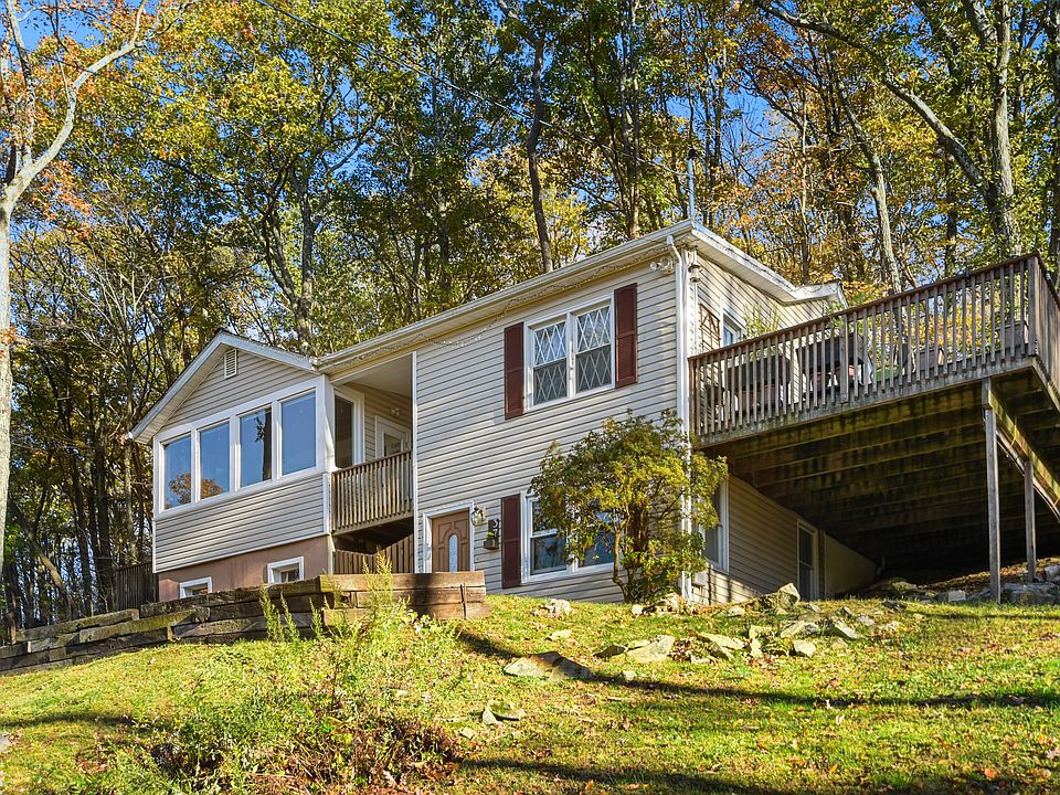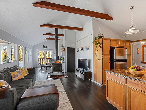 Serenity now! Enjoy fabulous mountain views and amazing sunsets from every room in this bright and airy sun-filled "move-in ready" home. Privately set and offering a contemporary flair with modern architectural details. The open concept great room with cathedral ceilings, exposed beams, kitchen island, wood burning stove, additional sitting area and access to multiple balconies/decking is perfect for entertaining or just relaxing. The family bedrooms have doors out to the expansive decking for your enjoyment. The family room on the lower level offers additional space and endless possibilities with entry in to the large storage/workshop area. Some of the recent updates include Bamboo flooring throughout, 3D wall in sitting area, custom paint, new bathrooms, whirlpool tub, recessed lighting, doors, roof, windows, HW heater, washer/dryer and more. Lake rights allow beach, swimming and boating and conveniently located to highways, transportation, schools, shopping and local eateries - this home is a must see!