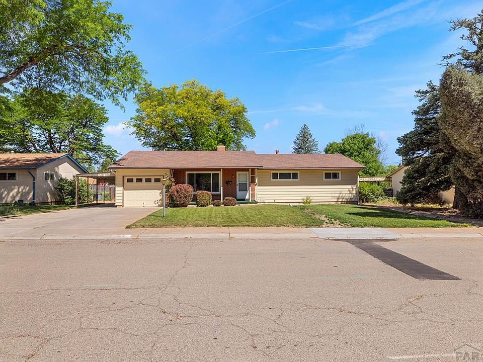 This wonderful ranch home is ready for your personal touch! With over $35,000 invested in recent updates, including a new sewer line, newer furnace, and A/C, this well-cared-for 3-bedroom, 2-bathroom home is a fantastic opportunity. The primary bedroom features an en-suite bathroom, and the home boasts a nice-sized kitchen, cozy fireplace, and hardwood floors. Enjoy outdoor entertaining on the large covered patio, perfect for grilling, and take advantage of the huge backyard. Additional features include a one-car attached garage, a carport, plenty of parking space, and included washer and dryer. Fresh exterior paint enhances the curb appeal of one of the larger lots in the neighborhood, boasting the best yard on the block. Don't miss the chance to see this beautiful home!