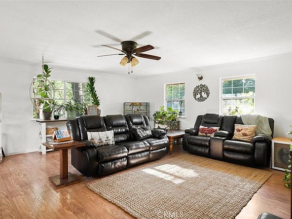 A garden lover’s dream! This property offers as much on the outside as it does the inside. Sitting on 5 acres, the main house gives you a bright living room, large dining room with a wood burning stove, a galley kitchen, laundry room, 2 bedrooms and a custom bathroom with a laundry shoot and lots of storage. Step outside and have coffee under the large pavilion surrounded by all of the beautiful landscaping. In the back awaits a detached 3 room office, workspace, or hobby shop. The options are endless. With acres to play, there is a fenced garden area, unfinished pool or pond, chicken coop, and firewood storage. The detached garage is custom built with cabinets, workbenches, and even an air filtration system. The home offers solar and a ductless mini split. Close to gas stations, casinos, and restaurants. Don’t let this wonderful property pass you by!