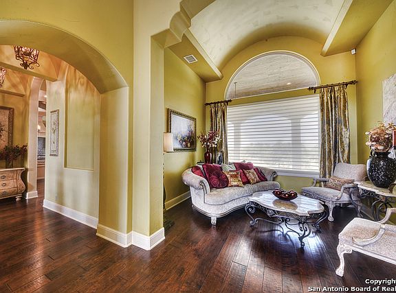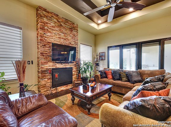 Beautiful Mediterranean Style home in the Hill Country of Boerne. This beautiful home has 4 bedroom and 4.5 bathrooms. The master suite is downstairs along with a secondary bedroom and bathroom. There is a game room, library and 2 bedrooms upstairs. The media room is in the heart of the home right off the kitchen. Sliding back doors open lead you to the back patio which has an outdoor kitchen. The architectural details and upgrades are not to be missed in this home.