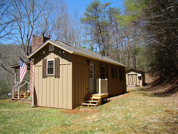 Perfect cabin in the woods looking over Big Reed Island Creek. Turnkey Perfect! Fully redone and upgraded 2BR/2BA cabin boasts new HVAC, roof, windows, paint, gutters, lighting, laundry and more! Wide plank wood floors with a floor-to-ceiling stone fireplace that's the envy of the neighborhood. Fully furnished with designer furnishings. Deeded water rights to Big Reed Island Creek. Light & Bright! The pictures tell the story...bring your toothbrush & start enjoying the Blue Ridge lifestyle!. Sit on the porch and enjoy the sound of Big Reed and the common ground to fish or canoe from. There is also a 10' x 12' outbuilding.