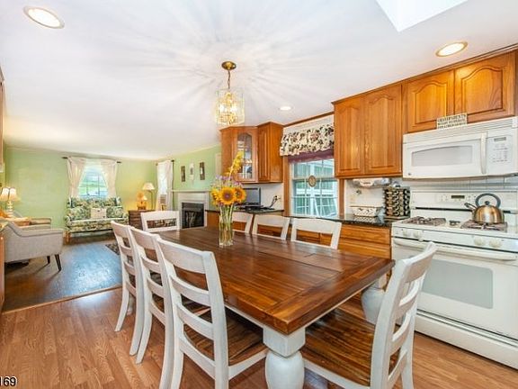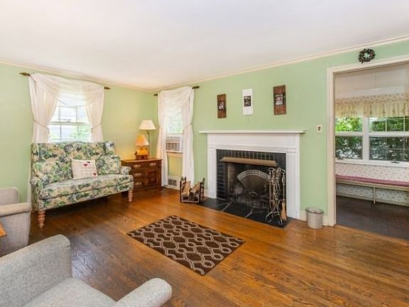 Welcome to this 3 bedroom, 2 full bath Cape! Large Eat-in kitchen w ample cabinets, granite countertops and built-in desk. A light filled living room open to the kitchen with wood burning fireplace allows for great entertaining. Two bedrooms, hall bath with tub shower and sunroom breakfast room complete this level of living. Ascend to the second level to find a spacious master bedroom w new carpeting (pine wide plank floors underneath carpet), small office nook and full bath. A finished lower level recreation family room w carpeting, laundry, utility room, storage and garage entrance. Other amenities include hardwood floors, outdoor sprinkler system, deck and patio! . Minutes to schools, town, mid-town direct train! Just a little TLC and vision to make this home yours.