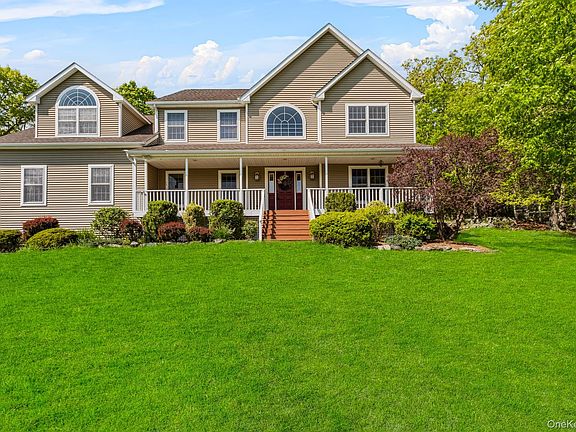 Welcome home to this impeccably maintained, freshly painted, 4 bedroom, 3.5 bath Front Porch Colonial which sits majestically atop its 1.74 parklike acres. Discover timeless charm and spacious luxury in this stunning home offering over 4000 square feet of beautifully maintained living space. This gem is perfect for entertaining and comfortable living! Open layout with gleaming hardwood floors. Boasts a designer kitchen with: cherry cabinetry, a multi-level island, granite countertops, travertine backsplash, a separate wet bar and top of the line appliances. The diningroom and living room have crown molding, chair rails and shadow box wainscoting. Large light filled familyroom with fireplace. In addition, you will find a home office/den or sitting room on first floor! The upper level boasts the principle bedroom with a luxurious bathroom with whirlpool tub and steam shower...plus, a huge walk-in closet. Three more spacious bedrooms , one with it's own private bath. All this PLUS 900 additional square feet of carpeted finished walk-out basement playroom (not included in sq footage).....and still a ton of storage area. In rear, you will find your expansive, private multi-level stone patio with built-in grill and firepit and a backyard full of character and mature landscaping. Enjoy the perfect balance of privacy (located in cul de sac) and convenience in a serene neighborhood, with easy access to schools, shopping, and commuter routes. (Northern Westchester/Putnam Border). Don't miss this beauty! FULLY AVAILABLE AGAIN!